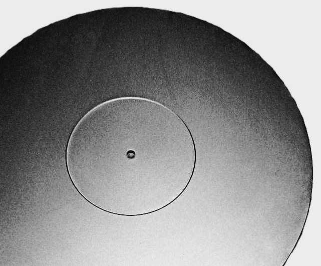 Isostatische Graphit-Platte: AD 295mm, Dicke 5mm. Loch in der Mitte 7,2mm, Vertiefung für Etikett. Satinierte Ausführung