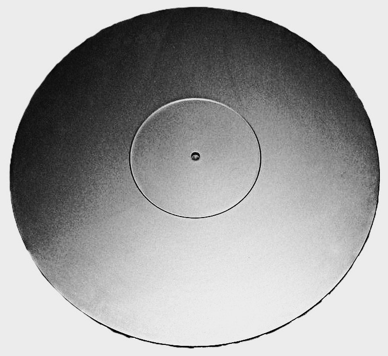 Isostatische Graphit-Platte: AD 295mm, Dicke 5mm. Loch in der Mitte 7,2mm, Vertiefung für Etikett. Satinierte Ausführung
