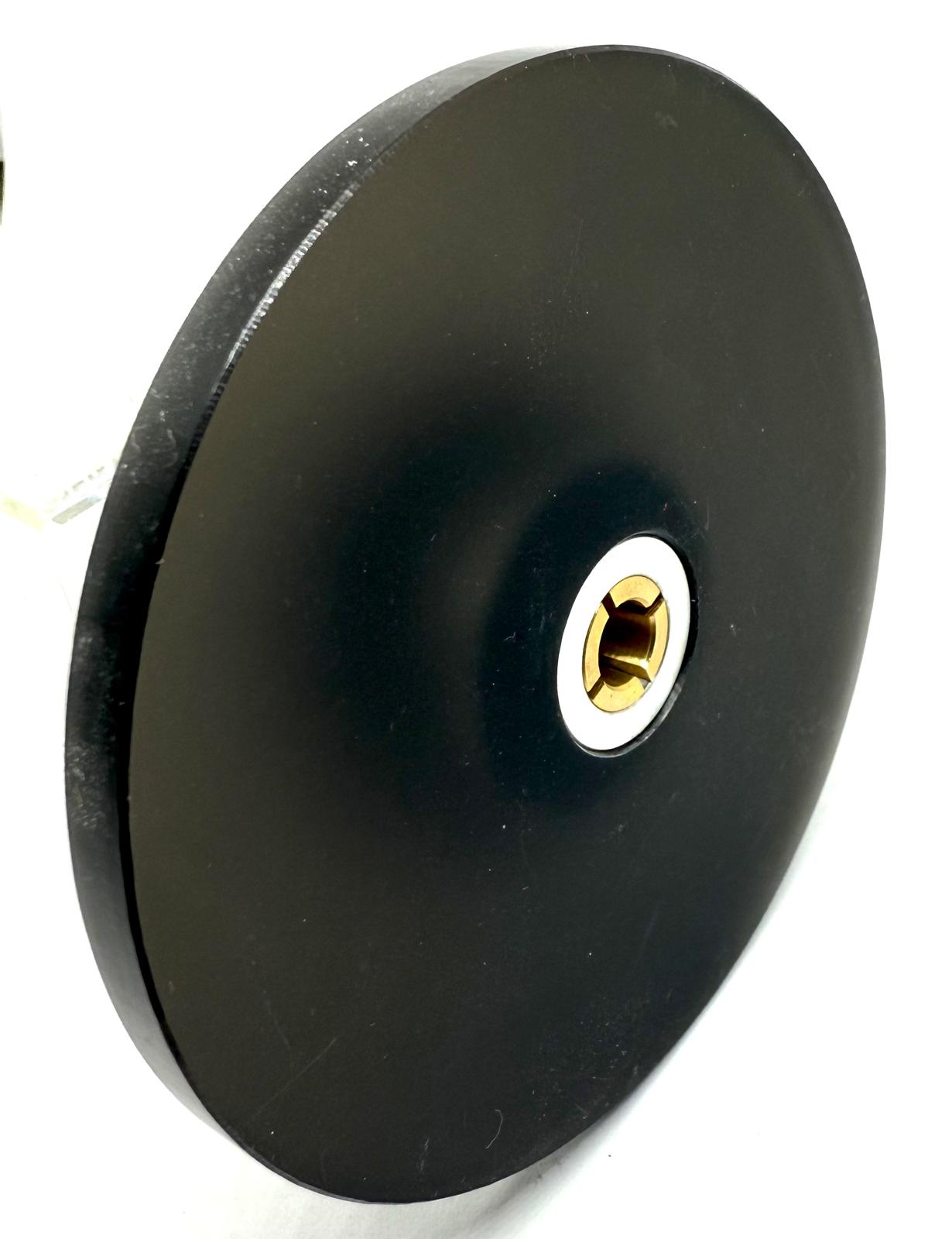 Platter clamp with high-quality plastic platter, brass cone, ergonomical rotary knob.