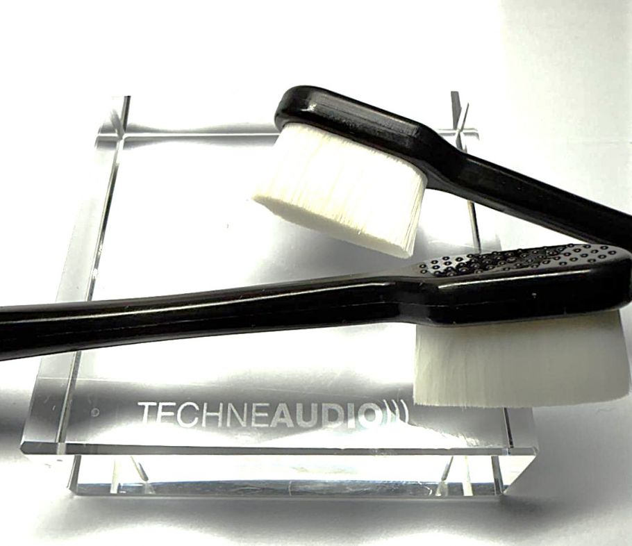 Tonabnehmerbürste "NEW" antistatisch von TechneAudio, syntetische Fasern mit angespitzten Enden, perfekte Handhabung, gut sichtbare Säuberung durch weiße Borstenhaare