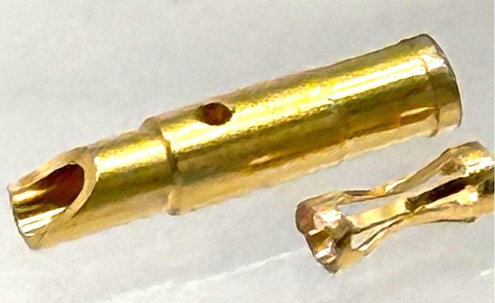 • Integrierte Federklemme aus Beryllium-Kupfer, die sich automatisch an die unterschiedlich dicken Tonabnehmer-Pins perfekt anpasst. Der Normdurchmesser der Tonabnehmer-Pins ist 1,25mm - in der Praxis weichen aber fast alle Hersteller davon ab. Dieser Stecker ist auch für die sehr dünnen Lyra Pins bestens geeignet, die mit 1,17mm sehr dünn sind. Der Stecker kann Pins von 1,12mm - 1,28mm aufnehmen. • Die komplette Stecker-Hülse ist antimagnetisch.