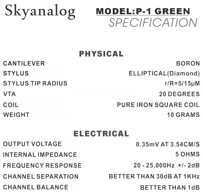 Mit seinem präzisen Boron-Nadelträger und einem fein geschliffenen elliptischen Diamanten sorgt der P1 G für eine det detailreiche, lebendige Musikwiedergabe. Das massive Aluminium-Gehäuse unterdrückt effektiv Resonanzen und garantiert ein stabiles, unverfälschtes Klangbild. Mit dem innovativen YAN-Dämpfungssystems bleibt der P1 G in dynamischen Passagen souverän und liefert eine beeindruckende Klangtiefe und Natürlichkeit. Für Musikliebhaber, die hochwertige Technik und emotionale Musikalität suchen, ohne ein Vermögen zu investieren, ist der Skyanalog P1 G – die Eintrittskarte in die Welt echter High-End-Performance.